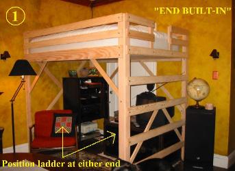 #1: "END BUILT-IN" Featuring a built-in ladder at the end of the loft bed. Upon assembly, you choose which end the ladder is on (left or right end of the loft bed).